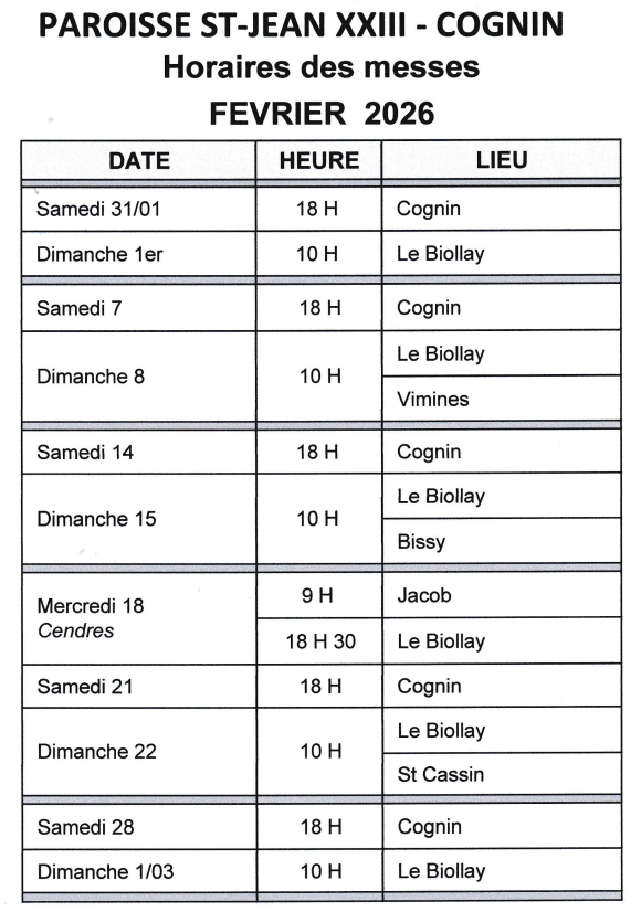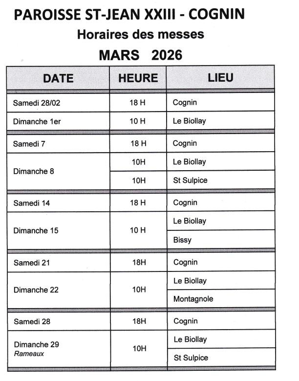 Horaires des messes
